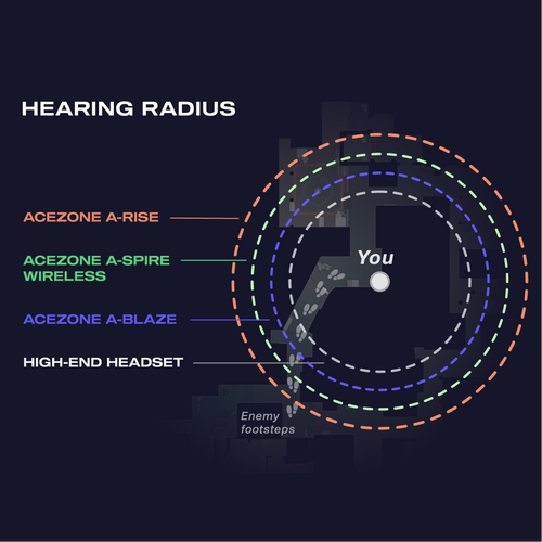 The combination of technology, features and design gives players using AceZone headsets incredible in-game advantages. We’ve measured how AceZone products perform against major competition headsets and the result is clear: if you’re using an AceZone headset, you will hear crucial in-game audio cues faster than if using a competing headset.