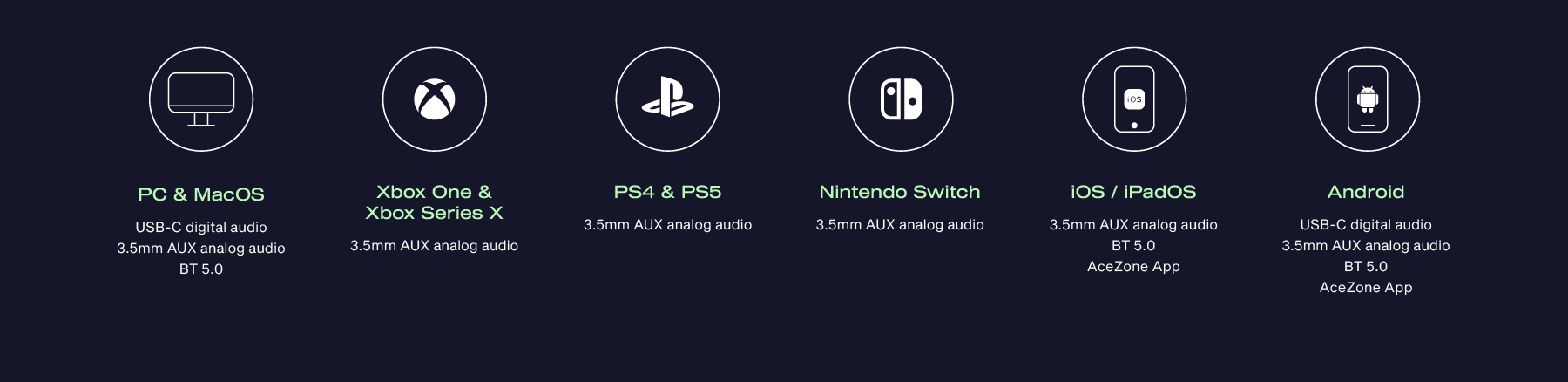 AceZone headsets features an industry first and only technology in Advanced Hybrid ANC developed for competitive gaming granting FPS gamers the fastest in-game response time, while having best in class noise canceling compared to any other gaming headset on the market.