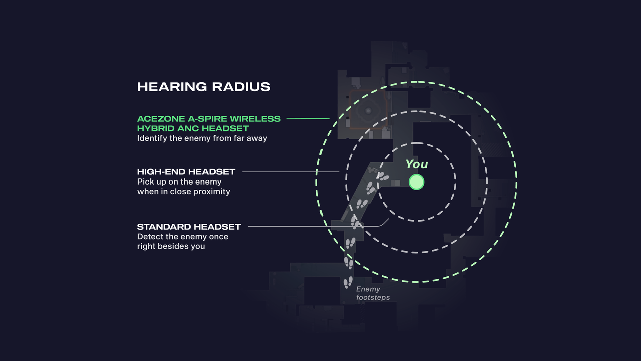 AceZone headsets feature an industry-first and exclusive technology in Advanced Hybrid ANC developed for competitive gaming. This technology grants gamers the fastest in-game response time while offering best-in-class noise cancellation compared to competition.