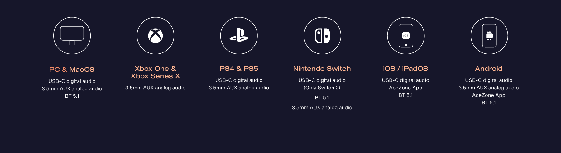 AceZone headsets features an industry first and only technology in Advanced Hybrid ANC developed for competitive gaming granting FPS gamers the fastest in-game response time, while having best in class noise canceling compared to any other gaming headset on the market.